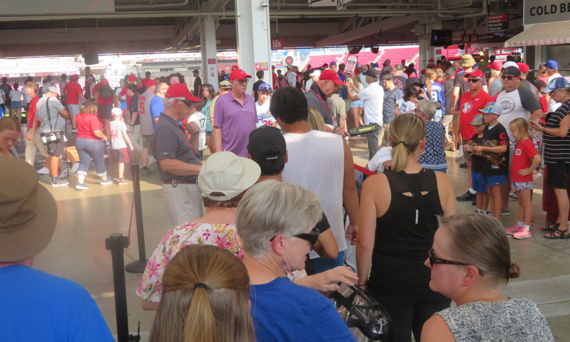 さあ入場だ! ゲートで荷物チェックを受けますが、球場毎に持ち込めるバッグにルールがあります。持ち込み禁止のバッグを持参しますとホテルに逆戻りという悲しい結末が待っています。